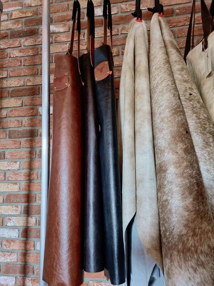 Naast de koeienhuiden (runderhuiden) hebben we diverse tassen, BBQ schorten, sleutelhangers, portemonneetjes, brillenhoezen en vlaggenlijnen. Hieronder een kleine impressie.
